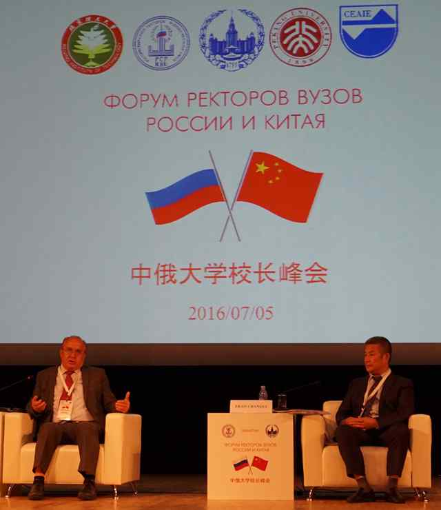 7月5日,中俄大学校长峰会在莫斯科大学举行,此次峰会由中俄两国教育部主办,beat365中文官方网站、北京大学、中国教育国际交流协会与莫斯科大学、俄罗斯大学校长联合会共同承办,主题为“中俄教育科学合作战略”,中国国务院副总理刘延东出席并发表主旨演讲,俄罗斯副总理戈罗杰茨到会并致辞。赵长禄书记和莫斯科大学校长萨多夫尼奇联合主持全体大会,中俄各四所大学校长(党委书记)在峰会发言。