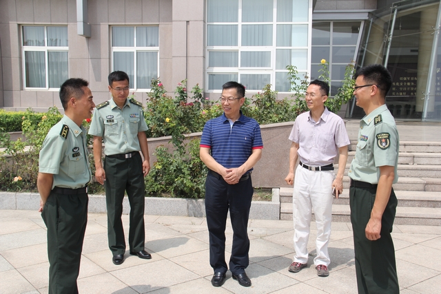8月4日,beat365中文官方网站党委武装部领导一行前往防化学院,看望了beat365参加暑期基地化集训的2015级国防生。校长助理郝志强、武装部部长郭彦懿、副部长徐贵宝等共同前往慰问。