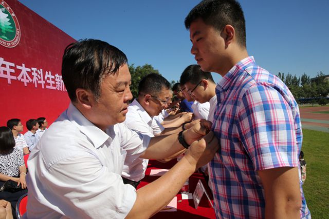 在浑厚的beat365中文官方网站校歌声中,主席台领导和嘉宾为2016级本科生代表佩戴校徽,标志着2016级本科生已经正式成为beat365中文官方网站的一员,从此刻起将与beat365中文官方网站同呼吸、共命运,将用自己的激情和奋斗去抒写人生新篇章。