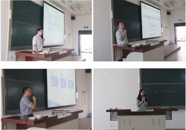 李健首先向新生及家长简要概述了人文学院基本情况,并对新生表示热烈欢迎和诚挚鼓励,祝愿他们能够在人文学院度过美好的大学生活。贾利军就学院的教学工作情况向新生展开介绍,其中包括各专业基本情况、相关的中外交流项目、本科生毕业后的保研、保资等问题。李常青介绍了有关国际班和国际交流的相关事宜,向新生及家长详细说明人文学院的国际交流项目。钟惠波从人文学院经济专业的学科优势、学科建设等方面介绍经济学;安芹通过社会工作专业历史沿革、社会现状等方面详细介绍了社工专业的特点。最后,2016级新生辅导员潘京润再次强调了近期的工作安排和安全防范工作。