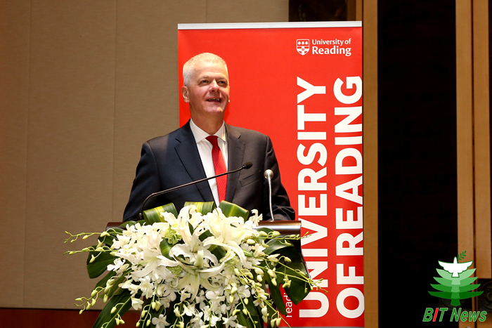 David Bell校长表示里丁大学的发展离不开校友的关注和支持,他为在座的中国校友感到自豪。他说,在中英关系的“黄金时期”,里丁大学与包括北理工在内的一大批中国重点高校建立了友好合作关系,里丁大学与北理工在教学、科研特别是与其亨利商学院的合作促进了双方的国际化发展和学术声誉提升,是中英教育文化合作的优秀典范,授予胡海岩校长荣誉博士学位将开启两校合作新篇章。