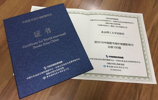 北理工出版社获评“2016中国图书海外馆藏影响力出版100强”