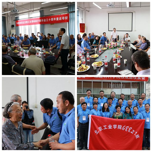 68821班集体参观校史馆,回忆那段艰苦却闪光的日子,重温经典岁月,感受母校的飞速发展。下午,68821班校友赶赴良乡校区,参观了良乡北湖和工业生态楼等。校友们纷纷感叹学院学校的辉煌成绩和蓬勃发展。