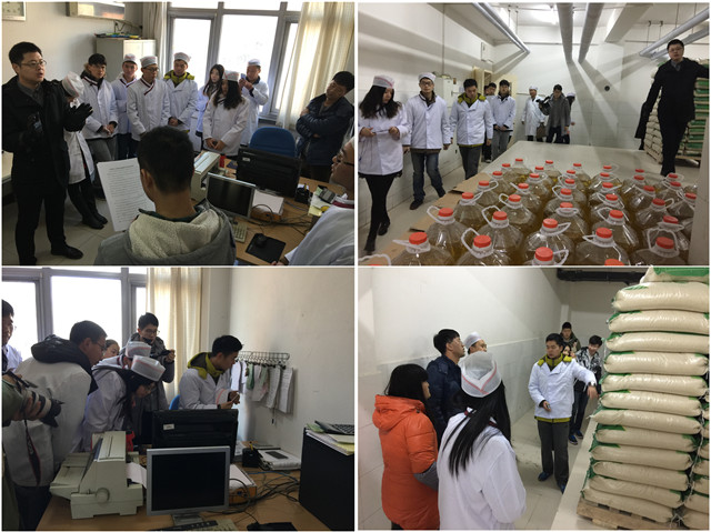 餐饮服务中心物资供应部主任武默涵带领学生先行参观了良乡采购站,介绍了食品原材料的采购流程和供货商的选择途径等,并强调了食堂所使用的食品原材料都来自高校联合采购中心认证合格的供货商,其中米、面、油等大宗原材料均由北京高校基地直供,日常管理中也对原材料的质量严格把关和检验。随后武主任向学生现场展示了供应商资质和验货单等表单,又带领学生们参观了副食库、主食库和冷库,并讲解了食品原材料出库、入库、存储等环节严格的工作制度和注意事项。尤其针对学生普遍关心的食用油问题解答了疑惑,强调了食堂所使用的油是进口无调和的纯大豆油。