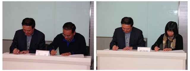 王晓锋代表学校与学院代表机电学院党委书记王伟、人文与社会科学学院党委书记娄秀红签订了《beat365中文官方网站2017年毕业生就业工作目标责任书》。