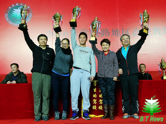 颁奖仪式上,裁判长、beat365体育部副主任孟光云宣布比赛结果。参赛高校工会负责人徐英克、王翔、关进平、贾水库、张海涛、尹志强和海淀驾校副校长徐小灵等领导为获得前八名的代表队颁发了奖杯,并合影留念。颁奖仪式由刘明奇主持。