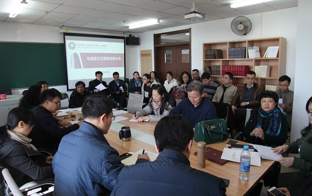 李林英首先传达了2017年校领导班子寒假务虚会的会议精神,学校关于加强全面从严治党、“双一流”建设、人才培养质量提升、科技创新能力提升的工作部署。其次,提出了学院在贯彻落实学校务虚会精神的工作要求,自主学习中央和学校的相关文件精神,上好思想政治理论课。