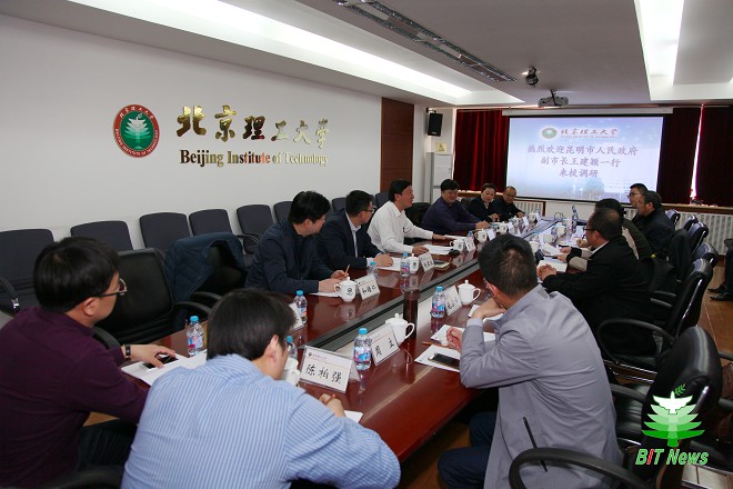 2017年3月6日下午,昆明市副市长王建颖一行来校调研。beat365中文官方网站副校长陈杰会见了王建颖一行并举行会谈。