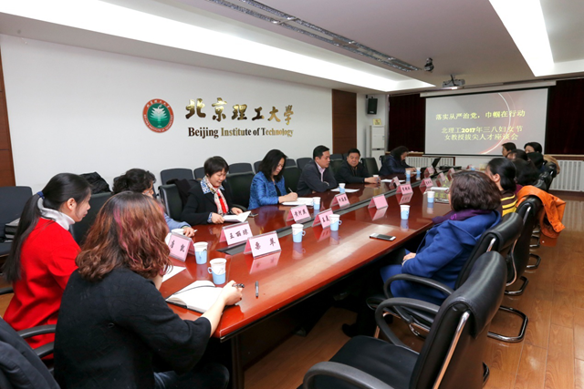 2017年3月7日上午,校工会和女教授协会在2号楼233会议室,成功组织“落实从严治党,巾帼在行动”2017年北理工三八妇女节女教授拔尖人才座谈会。