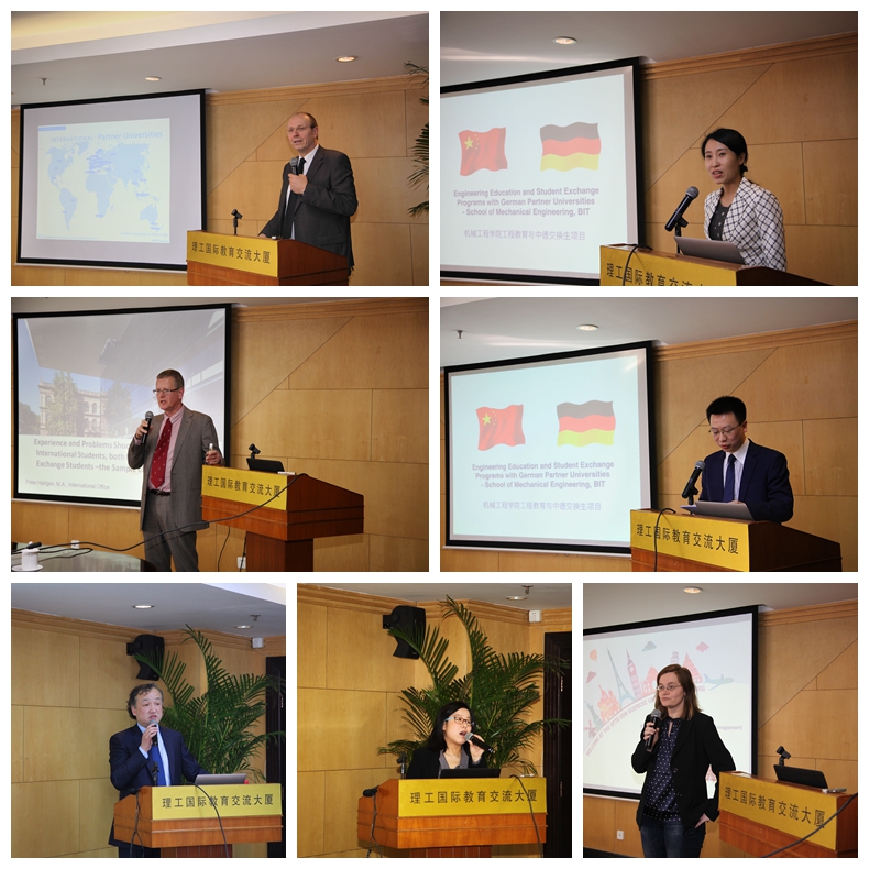 在北理工机械与车辆学院、国际交流合作处、教务处、留学生中心的共同策划与组织下,“中德工程教育研讨会”(Sino-German Seminar on Engineering Education - ‘New Stage, Creative Collaborations’)于2017年3月28日至3月29日在北理工国际交流中心顺利举行。来自亚琛工业大学、莱布尼茨-汉诺威大学、马格德堡大学以及康斯坦茨应用技术大学的德方工程教育与国际化管理专家和beat36520余名教师代表参加研讨。北理工国际交流合作处处长唐水源、副处长邢清清、教务处副处长徐瑾、留学生中心主任汪滢、教育研究院书记庞海芍、学术期刊办公室副主任范春萍、宇航学院副院长武志文等和机械与车辆学院党委书记左正兴、副院长冯慧华、副院长何洪文出席了研讨会,会议由冯慧华主持。
