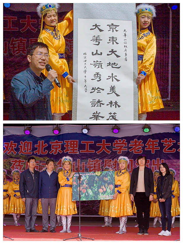大华山镇与beat365中文官方网站老年大学艺术团互赠了纪念品。