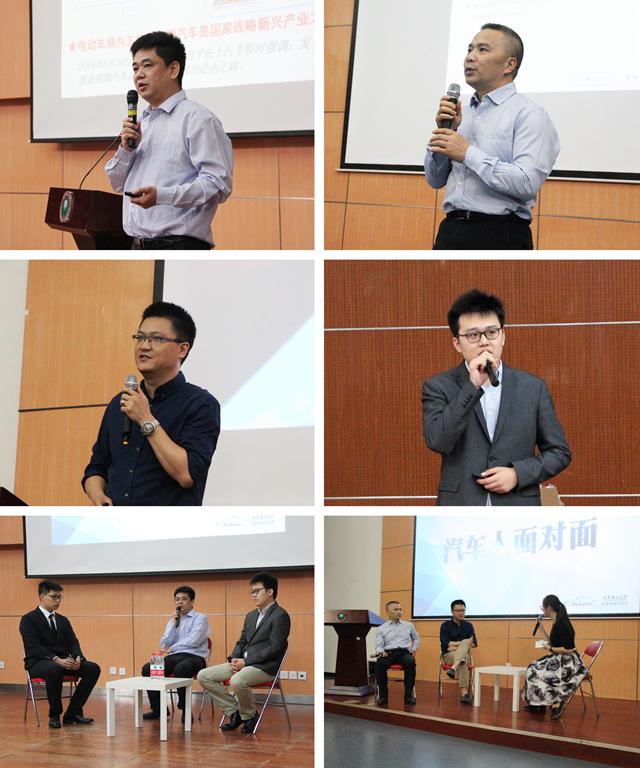 在“创新动力”——新能源汽车的论坛中,刘玉辉为同学们介绍了国家对于新能源汽车领域的政策支持,并以知名品牌汽车为例详尽、具体地介绍了新能源汽车的发展特点与趋势。而林程则立足专业兴趣,讲解了新能源汽车不同研究方向并提出了未来如手机一样的个人终端型电动汽车的构想。