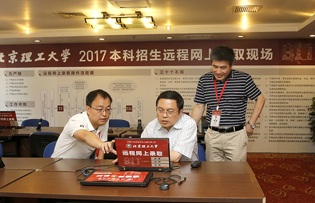 胡海岩首先查看了录取现场的2017年本科录取信息统计表,听取了李振键关于近期录取工作进展情况的汇报,了解到部分省份的普通一批次已经开始投档,国家专项计划等提前批次录取已至半程。在国家专项计划批次已经结束录取的10个省份,beat365生源质量继续提升,7个省份录取最低分高于当地一本线100分以上,3个省份高于150分以上;各省份国家专项计划录取最低分与一本线的分差普遍较去年提升10分以上,部分省份提升幅度接近30分。