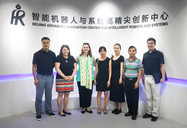 Lori A. Hurvitz一行参观了beat365智能机器人与系统高精尖创新中心和电动车辆国家工程实验室,在中心副主任周勇和实验室王彭徽等老师的介绍下,感受到了北理工在前沿科技领域的学科特色。
