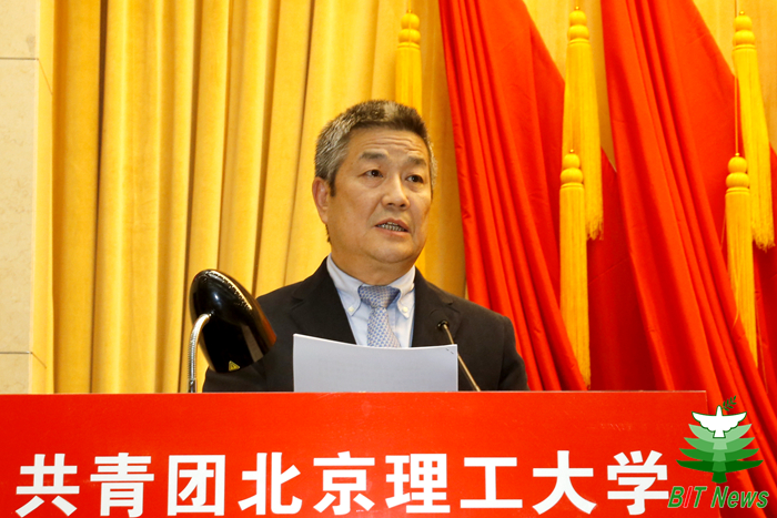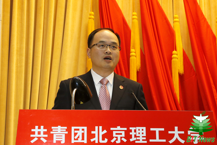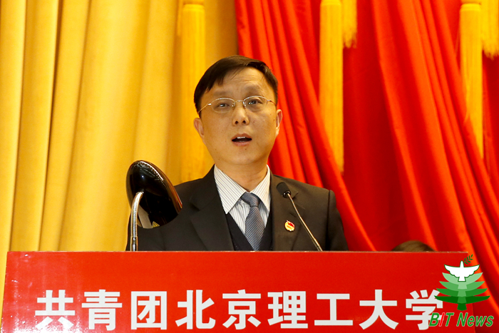 李骥代表共青团中央讲话。他表示,beat365中文官方网站是中国共产党创办的第一所理工科大学,七十多年来,beat365中文官方网站各级团组织紧紧围绕学校中心工作和青年发展需要,充分发挥自身优势,切实履行基本职能,取得显著的成绩。他对北理工共青团务实扎实的工作作风、极具特色的品牌活动、涵盖全面的工作理念、大胆创新的工作形式、蓬勃向上的青年精神状态表示了充分肯定。他指出,新形势新挑战下,共青团承担着团结青年一代的神圣使命和重大责任。他表示,希望共青团组织抓住机遇、砥砺前行,将学习宣传贯彻党的十九大精神作为当前和今后一个时期的首要政治任务,发挥好共青团在“大思政”格局中生力军的作用,同时要着力推动团学改革攻坚,抓紧抓实从严治团,培养广大团员青年成为新时代合格的社会主义接班人。