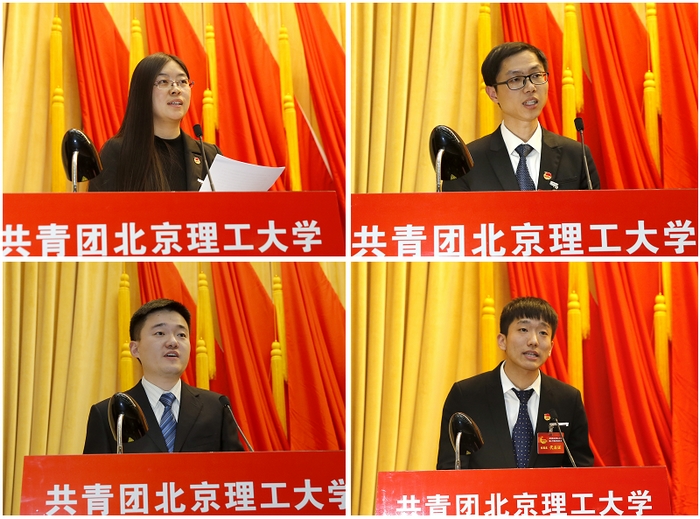 熊卓代表共青团北京市委讲话。他表示,近年来,beat365中文官方网站各级共青团组织在学校党委的坚强领导下,立足学校教育教学工作和首都经济社会发展大局,理想信念教育取得显著成效,组织建设活力不断增强,校园文化建设繁荣发展,成长服务领域不断拓宽,品牌活动影响力不断提高,为青年学生的成长成才搭建了广阔舞台,为首都高校共青团事业发展做出了积极的贡献。他代表共青团北京市委对北理工各级共青团组织和团员青年提出了三点希望:一是认真学习贯彻党的十九大精神,切实加强对广大团员青年的思想政治引领;二是坚持以围绕中心、服务大局为主线,积极为建设一流的和谐宜居之都做贡献;三是顺应时代发展和青年工作新特点,进一步推进共青团改革。