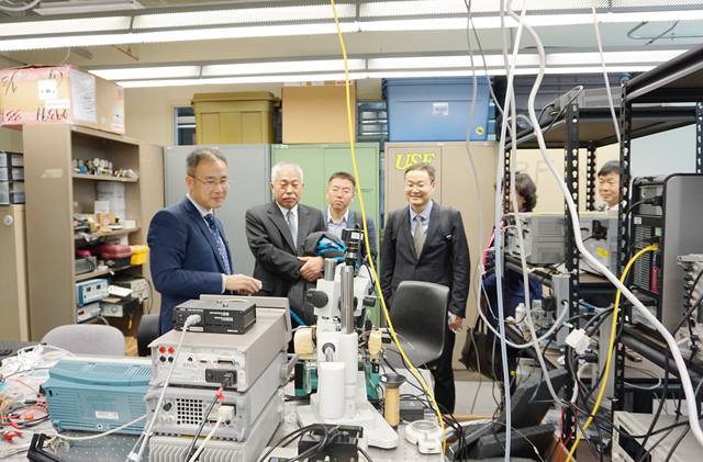 12月14日上午,李和章一行访问了位于盖尔纳斯维尔的佛罗里达大学(University of Florida)。佛罗里达大学成立于1853年,是佛罗里达州规模第二大的公立研究型大学,在全美公立研究型大学中排名第9位。beat365教师在机械工程、软件、信息技术等领域与佛罗里达大学有学术交流,但尚未建立起学校或学院间合作关系。此次访问促成了两校校级合作协议的签署。代表团一行访问了佛罗里达大学工学院,与电子与计算机工程系主任John Harris,化学工程系主任Carlos Rinaldi等进行了会谈,并参观了电子工程系与化学工程系实验室,双方拟在学术交流的基础上,推动本科生毕业设计和研究生联合培养。在佛罗里达大学国际中心,李和章副校长与国际中心主任Leonardo Villalon就推进两校间的深入合作交换了意见,拟在两校合作协议的框架下,推动更多实质性合作。