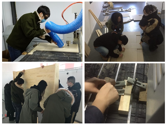 筹备这次展览共耗时一个多月,有三十个研究生参与其中,每件展品都由学生亲自设计并加工制作,先后经历头脑风暴、制作草模、三维建模、选材、加工和拼接等步骤,过程中,学生们不仅深化了关于对coworking的研究,同时还熟悉了材料与加工工艺等方面的知识,对日常所学深刻领会,做到学以致用。