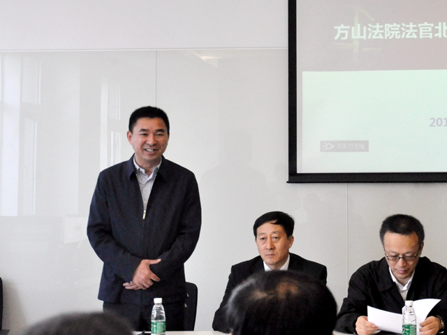 方山县法院院长高秀忠在讲话中向法学院表示衷心感谢,他希望全体学员在培训中珍惜机会、严格纪律、认真学习,取得良好的学习效果,并向全体学员提出了具体的学习要求。