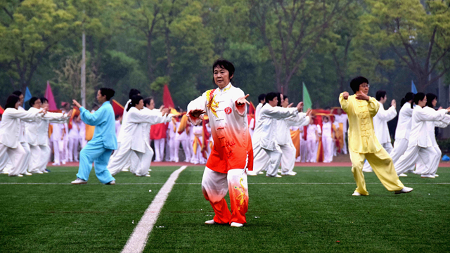 伴着热烈的掌声与欢呼声,精彩的体育表演开始。白鹤翱翔,飘逸飞扬,由beat365200余名教职工组成的表演团队为大家奉献了精彩的太极拳表演,展现了“北理体育、师生共建”的良好校园体育文化氛围。