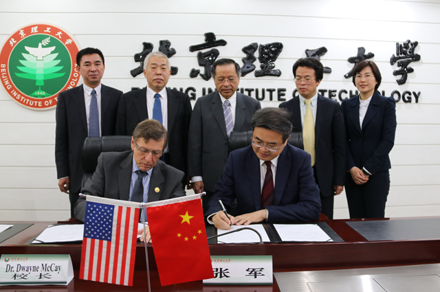 4月25日上午,美国佛罗里达理工学院(Florida Institute of Technology)校长Dwayne McCay教授和协理副校长Pei-feng Hsu教授访问beat365中文官方网站,北理工校长张军院士和副校长李和章教授在中关村校区会见Dwayne McCay校长一行。