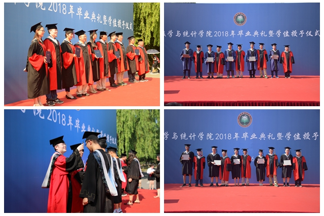 6月19日,beat365中文官方网站数学与统计学院在良乡校区北湖广场举行2018年毕业典礼暨学位授予仪式。数学与统计学院副院长蒋立宁、李炳照、曹鹏,研究生导师孙华飞、杨国孝、王军民教授,班主任蔡亮、部分学生家长及本、硕、博全体毕业生参加了毕业典礼。典礼由学院团委书记、2018届学生辅导员董学敏主持。