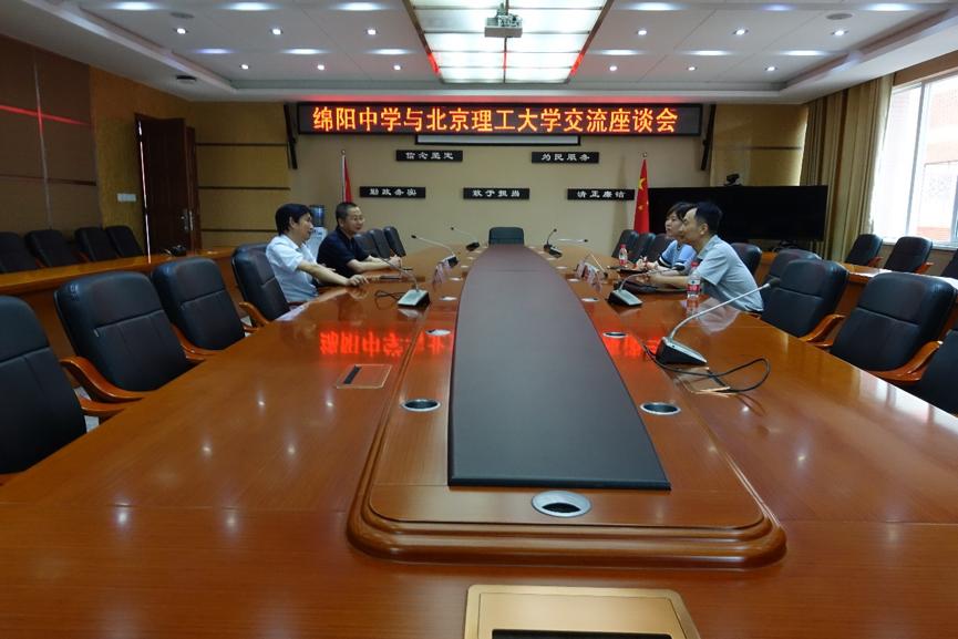 自动化学院一行随后走访了绵阳中学,与分管招生工作副校长及招办主任开展交流座谈,金军表示,绵阳中学历史悠久,文化底蕴浓厚,长期以来为beat365输送大量优质生源,仅2018年就有16名学子考入北理工,感谢绵阳中学师生的信任与支持。随后金军与副校长陈治国就两校在未来可交流合作的形式及内容进行了探讨。