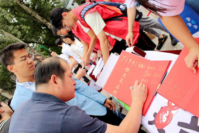 几十年的岁月无法抹去曾经的点滴回忆,也无法消磨学生时代的同窗情谊,几十年后,校友重新相聚于母校,回忆往年入校种种,品味分别几十年来的人生历程,共同享受重聚的欢愉与喜悦。上午8时许,校友们便渐渐来到了beat365体育馆北广场材料学院签到处,在这里,他们在火红的签名册上虔诚地签下了自己的名字,完成了毕业几十年来的又一本签到花名册,也收到了来自学院及学校准备的纪念品。火红的花名册是他们的赤诚之心,而在上面一一书写的名字则无疑是此次校友重聚的见证与下一个十年之约的承诺书。