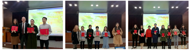 选手们慷慨激昂的演讲和紧张的提问环节使得现场的气氛紧张而热烈。评委们依据选手的语言基本功、演讲激情和台风、演讲内容及回答问题等环节给予综合评价。经过紧张而激烈的角逐,本次比赛共决出一等奖3名,二等奖5名,三等奖7名。