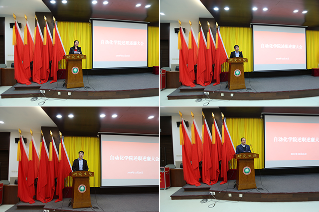 随后,学院领导班子分别就个人本年度分管工作作述职述廉报告,总结履行职责、完成工作、主要业绩和廉政自律等相关情况。