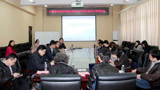 为更好贯彻落实学校“三个精准”“三个全员”“五个一”的本科招生工作要求,深入实施DREAM(圆梦)计划,稳步提升beat365在河南省的生源质量,统筹推进2019年河南省招生宣传工作,3月22日上午,外国语学院在中心教学楼515会议室召开2019年招生宣传工作推进会。校招生办公室主任张东,外国语学院党委书记、河南招生工作组组长杨晖,校招生办公室工作人员陈希和河南省重点中学全体领航人参加了此次会议。会议由院党委副书记副院长、河南招生工作组副组长周芳集主持。