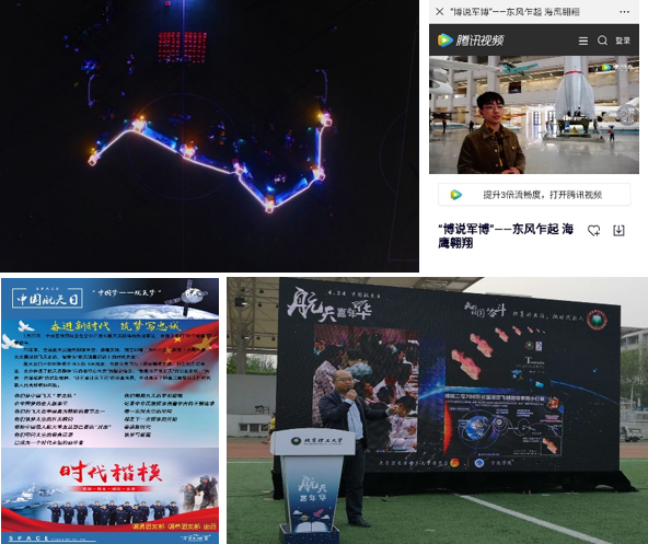 宇航学院依托学科特色,举办“仰望星空”主题活动,开展航天主题网络文化作品大赛,引导青年学生学习践行航天精神,激发航天报国情怀。举办“航天嘉年华”活动,用点亮“北斗七星”的方式喜迎航天日,象征北理工参与研制的北斗导航卫星系统,也寓意新中国成立70周年与中国航天发展的70年,每块展板都详述了北理工在“拓天”事业中取得的重要成就,共500余名师生参与了现场科技游戏体验。举行航天主题座谈会,激励学生在航天强国的征程中书写青春奋斗故事,彰显时代担当。