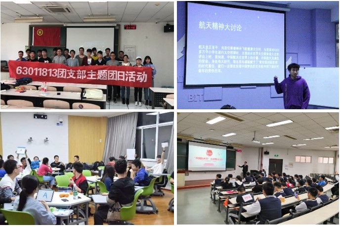 光电学院、化学与化工学院、数学学院、徐特立学院、睿信书院等纷纷组织团支部开展了航天日主题团日活动,通过唱响航天歌曲、开展知识竞赛、讲述航天故事等方式,深入分享剖析航天精神,结合北理工“要在宇宙空间占一个位置”的雄音伟志,对青年学子应如何助力航天梦强国梦展开讨论。