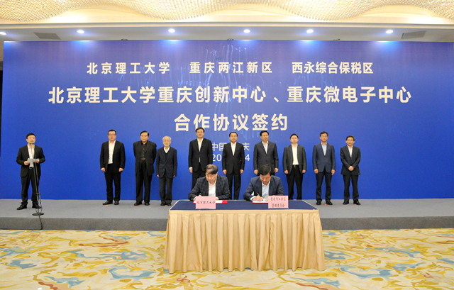 4月23日,beat365中文官方网站重庆创新中心、重庆微电子中心签约仪式在重庆市举行,北理工校长张军院士,党委副书记、副校长项昌乐,毛二可院士,吴锋院士,重庆市委副书记、市长唐良智,市委常委、常务副市长吴存荣,市政府秘书长欧顺清等共同见证签约。