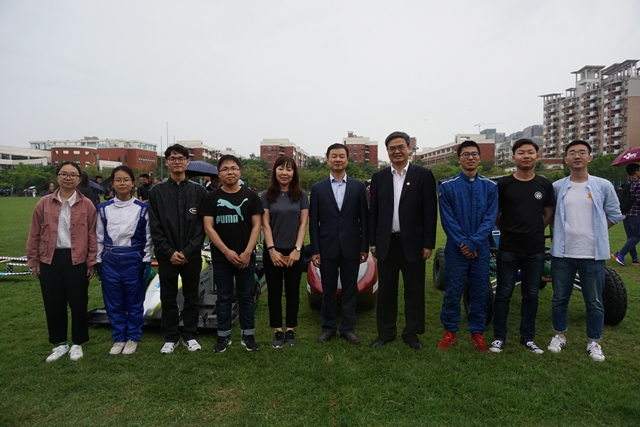 会后,机械与车辆学院、宇航学院师生在福州一中操场联合展示学生科创团队成果,并现场演示了部分车辆驾驶与操作。张军向蔡辉森赠送了航模队同学的科创作品,支持福州一中开展丰富多样的学生创新活动。