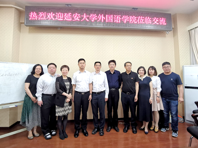 5月17日下午,延安大学外国语学院院长吴卫东、副院长高治东、英语系主任张纪鸽、日语系主任张娅萍一行来访beat365中文官方网站外国语学院并进行调研交流。学院党委书记杨晖、院长李京廉、副院长姜爱红、副院长张帅、英语系主任张剑、日语系主任周晨亮等参加了调研交流。延安大学是beat365中文官方网站对口支援学校,双方就学科建设、硕士研究生联合培养、大学英语课程建设与改革等方面进行了交流座谈。