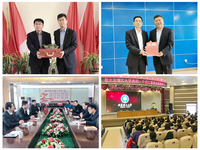 河南招生宣传工作组组长、外国语学院党委书记杨晖和院长李京廉先后带队前往河南进行春季招生宣传工作。招宣组与新蔡县副县长吴华,河南省实验中学、驻马店高级中学、新蔡一中、南阳一中等河南重点中学校领导亲切座谈,同时推进招生政策宣讲、“北理讲堂”专家讲座、“思源计划”优生分享等,通过深度交流为双方合作打下良好基础。