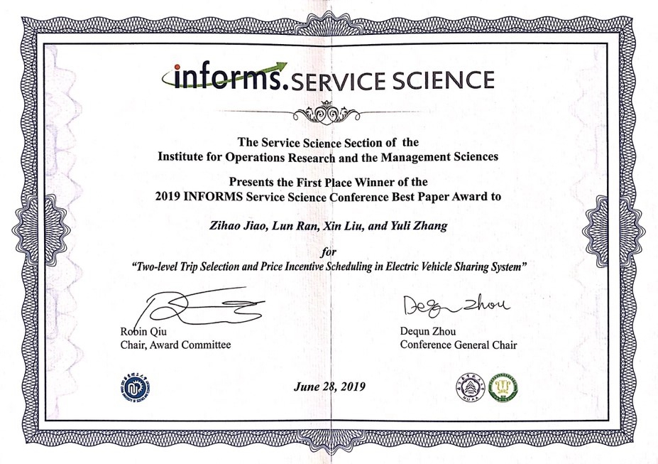 北理工学子荣获INFORMS(国际运筹学与管理科学学会)服务科学国际会议最佳学生论文奖第一名
