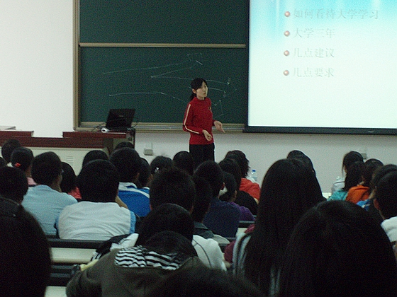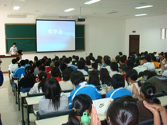 交流会开始后,讲台上的学长激情飞扬,指点江山;讲台下的07级新生聚精会神:
