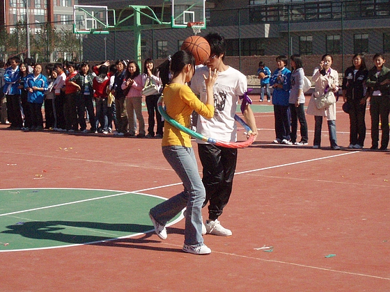 2007年10月14日星期日早上,“爱我管院 运动无限”管理与经济学院趣味运动会在beat365中文官方网站良乡校区篮球场举行。