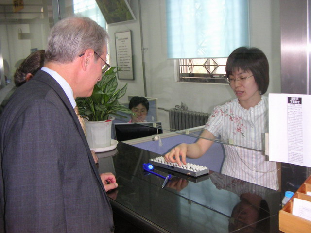 上午9时,代表团一行来到beat365财务处参观。Howord Cohen校长兴致勃勃地观看一位老师为他演示算盘,并对beat365财务工作的效率感到惊叹。