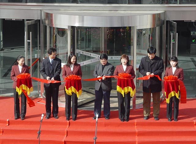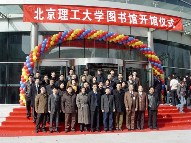 校领导在为图书馆新馆开馆剪彩。