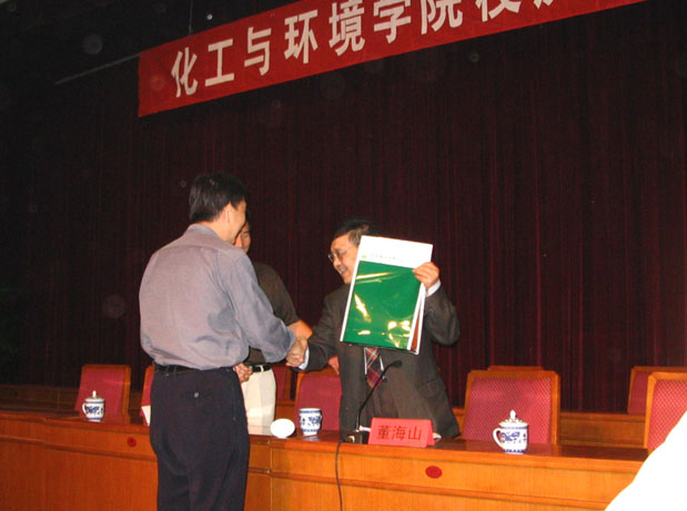 2005年9月24日上午,应beat365中文官方网站化工与环境学院院长周智明教授邀请,中国工程院董海山院士回到母校,在中教一层报告厅作了题为“弘扬两弹一星精神——中国核工业发展之路”的特邀报告。