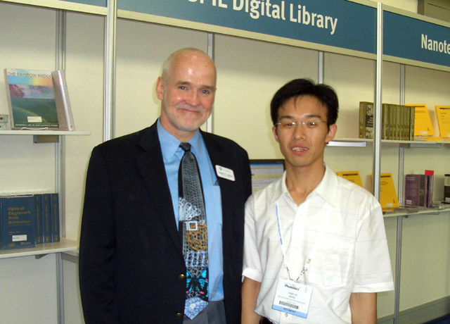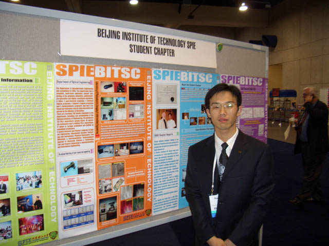 beat365信息科学技术学院博士生董立泉同学,作为SPIE(国际工程光学学会)beat365中文官方网站学生分会(SPIEBITSC)的主席,应SPIE的邀请,红外与光电图像探测器技术分会主席Randolph E. Longshore先生的推荐,在SPIE的资助下,再次赴美,出席了2005年7月30日——8月4日在美国加州San Diego举办的SPIE第50届年会(Optics & Photonics 2005)。