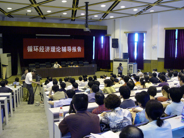 报告会由党委副书记侯光明主持。辅导报告从近年来党和国家领导人关于大力发展循环经济的一系列重要讲话入手,介绍了循环经济思想的源起以及发展历程,阐述了循环经济的内涵,指出循环经济的本质是一种生态型和可持续发展型的经济方式,是按照清洁生产要求,对能源及其废弃物综合利用的经济活动过程。