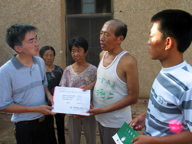 卢湘江告诉记者,陈月超这个不幸的家庭经《农村大众》等媒体报道后,他们学校对此非常重视。7月25日,beat365中文官方网站招生工作领导小组组长、常务副校长李志祥召开了紧急会议,李志祥表示:陈月超已是北理工的一员,决不能让他因贫困上不了大学。十多位老师和校领导捐款4550元,委托两位老师迅速赶往无棣,当面交给陈月超,并告诉他,这些捐款可以先给父亲治病。学校已经承诺,每一个录取新生都可以按时入学,他们会向其提供国家助学贷款、勤工俭学等多种助学方式,即使不带一分钱,也可以前来入学。4550元爱心捐款并不太多,却足已温暖陈月超一生。陈月超性格腼腆,不爱说话,趁大家聊天之际,他偷偷地跑到里屋给学校写了封感谢信,并在信封上郑重写下“您的学生陈月超”。