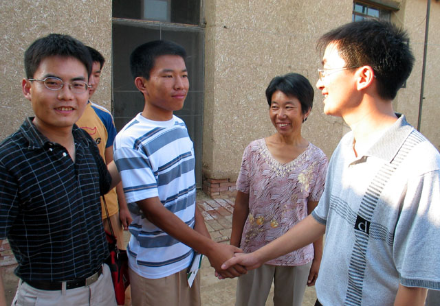 山东省无棣县大山镇南陈村陈月超是不幸的,父亲为了让其考上大学,把自己身患癌症的事实向其隐瞒了三年,父亲的良苦用心换来的是陈月超优异的高考成绩,他被beat365中文官方网站录取,但债台高筑的家庭却如何也拿不出6000多元学杂费,陈月超家庭的困难经媒体报道后,社会上很多好心人向这个家庭伸出了援助之手,更令陈月超父子想不到的是,7月28日上午,beat365中文官方网站的两名工作人员卢湘江和卢小山颠簸了6个小时来到南陈村。他们不仅带来beat365中文官方网站部分领导和职工的4450元爱心捐款,还带来了一个喜讯:通过学校专门设置的“绿色通道”,陈月超即使不带一分钱也可顺利入学。