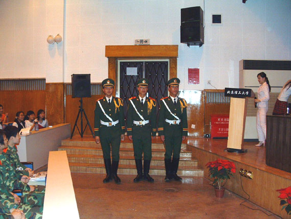 4月26日下午,应beat365学生会之邀,天安门国旗护卫队来beat365举行报告会,beat365七十余名国防生代表及理学院2002级全体学生有幸“零距离”目睹了国旗护卫队官兵的英姿和风采,上了一堂生动的爱国主义教育课。
