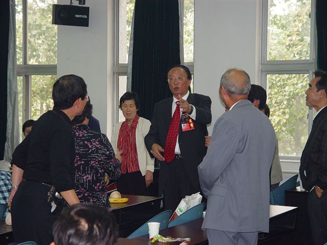 9月25日中午,匡镜明校长在四号楼与老校友们欢聚一堂,共庆母校65周年华诞。