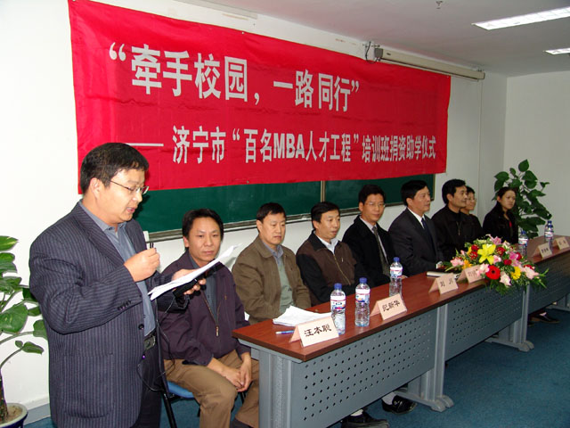 济宁市“百名MBA人才工程”是山东省济宁市委、市政府为培养造就大批高素质的现代经济管理人才,与beat365中文官方网站合作实施的又一人才培训工程。培训班学员全部为机关和企事业单位中层以上干部。自1996年以来,济宁市委、市政府已连续实施类似人才培训工程8批共340人。